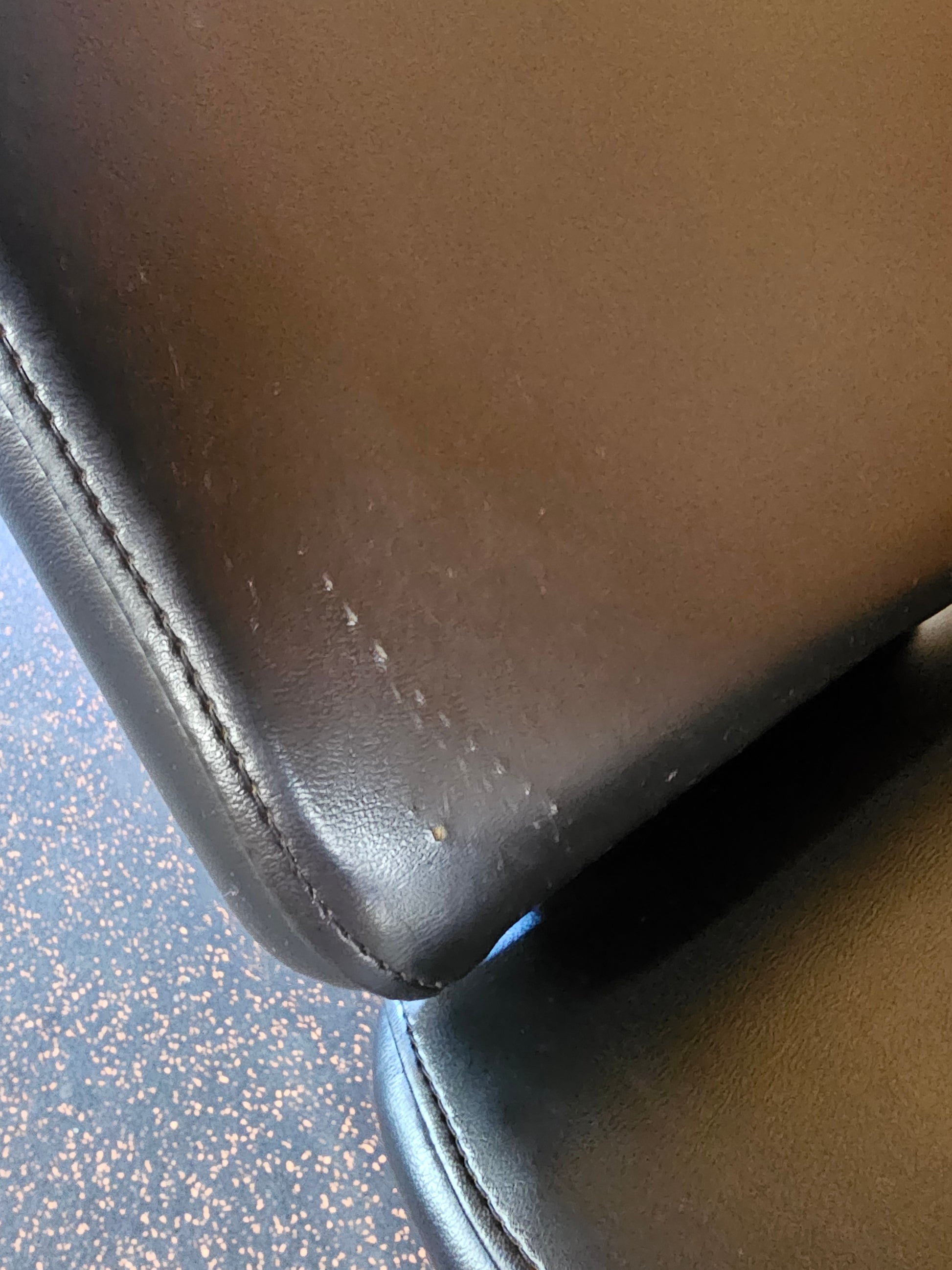 Upholstery in good condition, small tears on the base of the back pad, pictured.